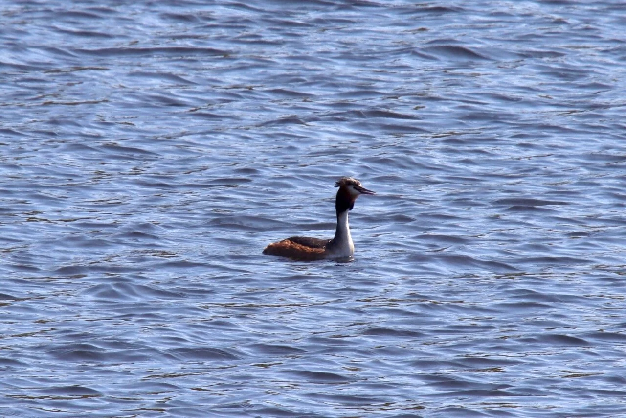 The beginning of lockdown saw a continuation of the lovely warm weather, much warmer than normal for April and I was enjoying getting out on the bike. Me and my partner decided to expand our cycling range by taking the bikes to Talybont Reservoir. As we were getting our bikes out of the car, I saw a white crow. This was the first time I had ever seen a white crow, also known as a leucistic crow. The white colouring is due to a genetic mutation which results in the bird having a lack of melanin, which is what gives crows their black feathers. It was so unusual to see a white crow, as I had always assumed that all crows were black and this one really stood out in the green field. After watching it for quite a long time and taking many photos, we continued our cycle along the Taff trail and on the way back I spotted a Great Crested Grebe, another first for me! It was definitely a good day for wildlife spotting.
